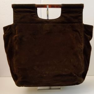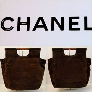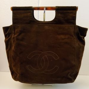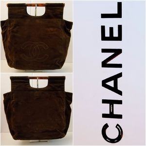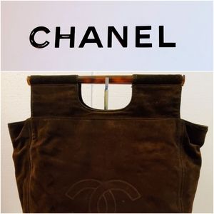 CC CHANEL BROWN SUEDE LEATHER VINTAGE ROD HAND BAG, CERTIFIED AUTHENTIC ♥