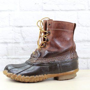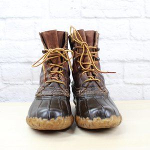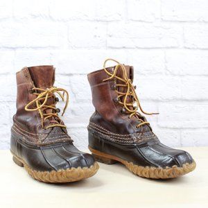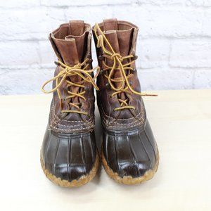 Vintage LL Bean Unlined Brown Leather Lace-up Duck Ankle Boots Size 6 M