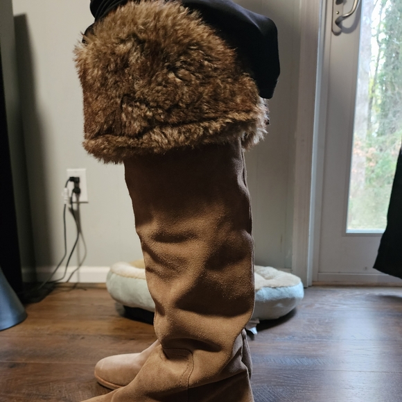 Sam Eldman Almost Knee High Suede Boots With Faux Fur Around The Top . Very Durable! Excellent Condition! Size 8/12 . I Am A Size 9 and I Still Have Extra Room !