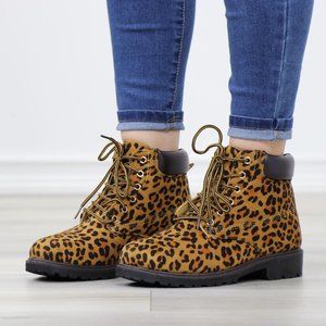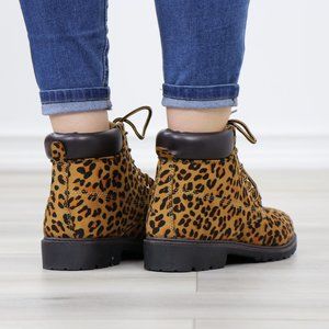 -Rubber Soles, Round Toe, Plush ankle lining, Lace Up, Leopard Animal Print