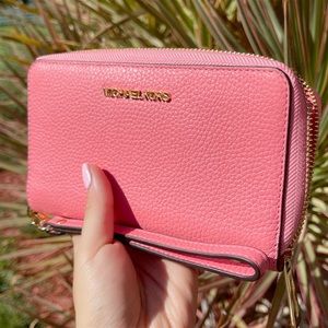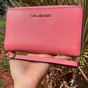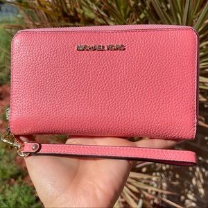 Michael Kors Jet Set Travel Large Phone Case Leather Wristlet MK