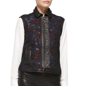 Rebecca Minkoff "Waller" vest in floral tapestry with leather trim.