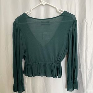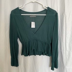 Urban Outfitters V Neck Crop Top, New With Tags, Ruffled Hem and Sleeve Detail