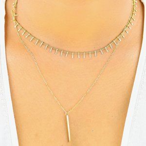 Layer like a boss and stay on top of the hottest jewellery trends with this April Layered Bar Chain and Choker Gold Necklace Set.