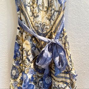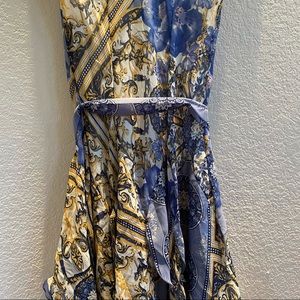 Tie sash at waist. Many ruffles on bottom half make this a perfect dress for twirling 😁