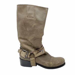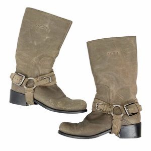 DIOR Strappy Brown Taupe Suede Leather Biker Short Boot 37.5 US 7.5
