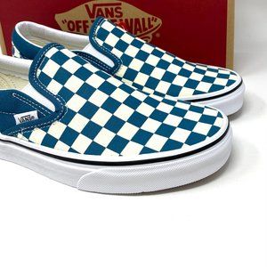 Vans Shoes Women's Classic Slip-On Low Top Checkerboard Canvas Blue VN0A33TB9EX