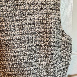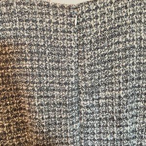 A feminine a-line dress in a subtle shimmery/metallic tweed. Back zip. On-seam pockets. Fully lined. A-line silhouette. Wool/poly/acrylic/nylon/silk. Very good condition. Only worn several times.