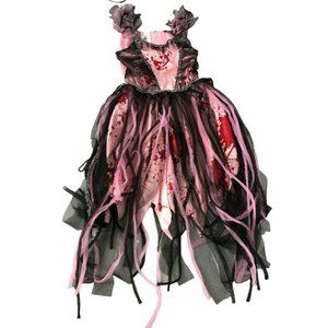 Halloween Spooky Gray Pink Tulle Dress w Blood Girls 8-10 Creepy Costume