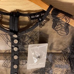 NWT Sister Jane Dream tiered flutter sleeve peplum rhinestone crystal blouse