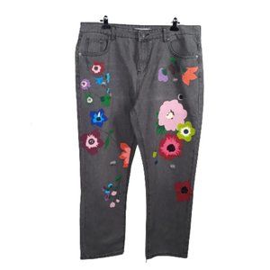 MISSLOOK WOMEN'S FLORAL PAINTED DISTRESSED BOYFRIEND FIT BLOWN JEANS SIZE XL