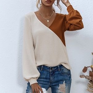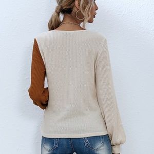 Cream Pink Waffle Knit Color Block Top Minimalist