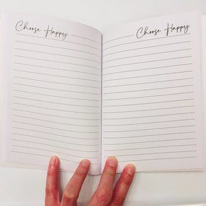 Light pink notebook with pretty pink and red flowers. "Choose Happy" printed on each page! Lined writing journal, 5"x7", 50 sheets. Please see photos for details. New!
