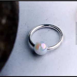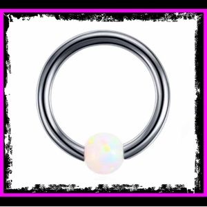 Retro Titanium Round Opal Bead Nose/ Lip Ring Hoop Body Piercing Jewelry