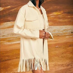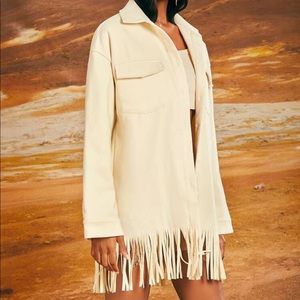 Apricot/Beige Button Front Jacket/Coat with Fringe Hem