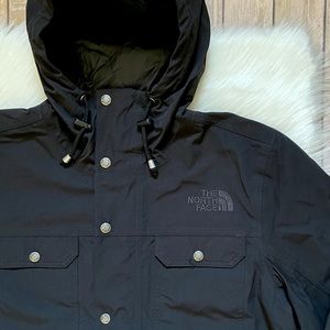 New With Tags- The North Face Men’s Kepplier Black Hooded Rain Jacket With DryVent Technology, Front Zip Closure, Storm Flap With Snap Button Closure, Lots Of Pockets And Adjustable Cuffs.