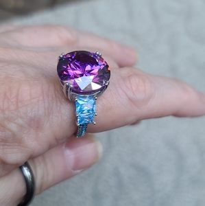 STUNNING HUGE Amethyst & Aquamarine Sterling cocktail ring sz8.5 💍