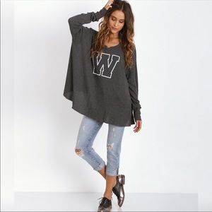 Wildfox Simply Sport Effortless W” Thermal Pullover Sweater/Top