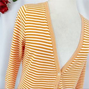 🐝Lands’ End Striped Cardigan Orange White Stripe Knit Sweater Cardigan