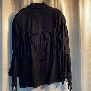 Vintage Black Leather Suede Fringed Jacket, Size L