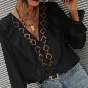 BOHO DOLLZ Minimalist Classic Embroidered lace ruffle flounce sleeve blouse