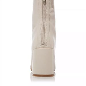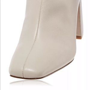 Fits true to size. Square toe. Back zip closure. Elasticized detail at cuff for flexible fit. 3" block heel. 6.3" shaft height; 10" circumference. Leather upper, synthetic & twill fabric lining, rubber sole