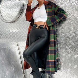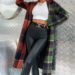 TRENDY GIRL Plaid Print Button Front Overcoat / Ja