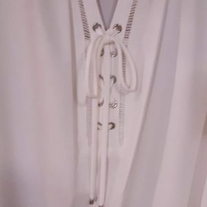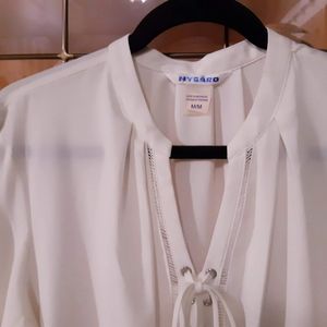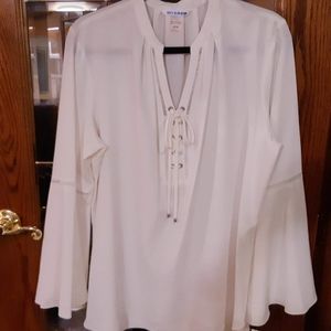 This blouse is so flowing with its wide bell sleeves and roomy body. I have nowhere to wear this beautiful blouse. I live in jeans now.