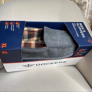 New! Dockers Slippers With Memory Foam Gray With Plaid Interior Size: XL 11/12.