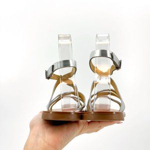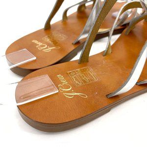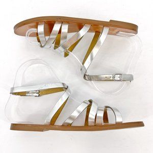 SOLD J. Crew Silver Mirror Metallic Leather Cross Strap Strappy Flat Sandals 6