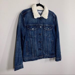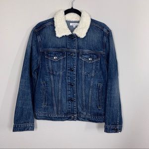 GOOD AMERICAN Sherpa Collar Boyfriend Fit Denim Jacket