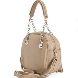 ORE10 Taupe Leather Round Tassel Satchel/Crossbody, Like New