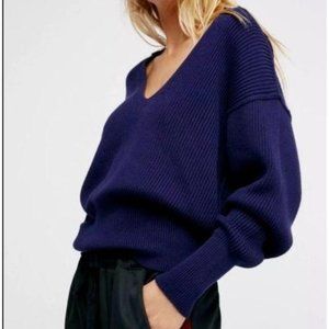 SOLD: Free People Allure Pullover V Knit Sweater Oversize Baggy XS Anthro Vibe