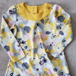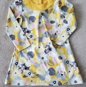 Gymboree outlet "Hello Yellow" collection. Golden yellow trim and background with with cream, light yellow, light pink and gray floral print. Has two golden buttons around the neck and 2 buttons in the back. Size 3T. I dont think that was ever worn, so EUC/NWOT.