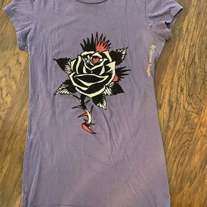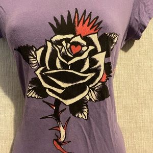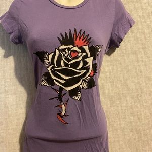 ED HARDY T Shirt BLACK ROSE design top XS