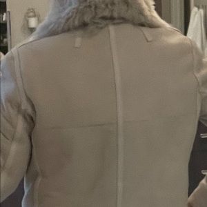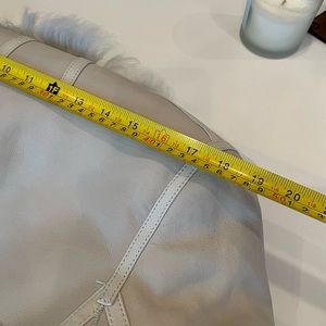 Yves Salomon grey leather and shearling reversible jacket. This coat goes to the waistline is so warm, cozy and comfortable and looks amazing on. Purchased from intermix and never wore it which is why I’m selling it. Jacket is a size 36 so it will fit a 6 or 8.