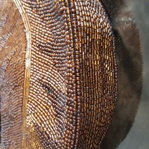 Brown/antique gold beaded evening bag (8 1/4" w by 5" h by 1 1/2" deep)