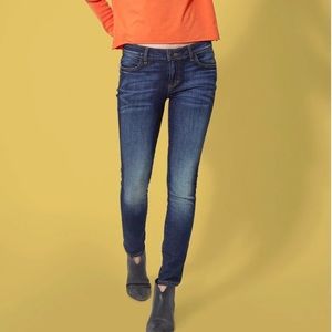 The Hannah is a low rise skinny tapered at the ankle with a versatile inseam that creates the perfect fit. Adorned with our signature embroidered back pocket and curved back yokes it highlights and controls curves, while adding lift. The 28” inseam is easily tucked into boots or worn with heels.