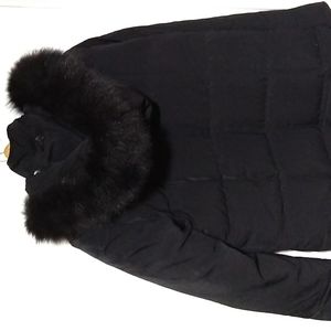 Anne Klein Waterfowl Feather Down Puffer Coat Opt.Fox Fur Trim Hood -LIKE NEW