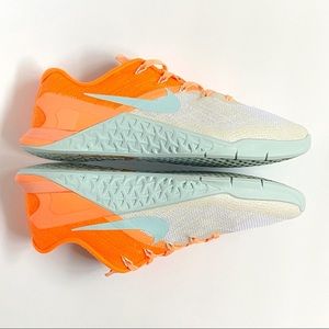 Nike Metcon 3 lace up training sneakers in bright orange / white / glacier blue