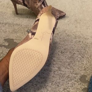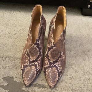 Be the total fashion girl you are when wearing the Layra bootie from Jessica Simpson. This silhouette is fashioned with playful prints and patterns that will give your ensemble show-stopping style.