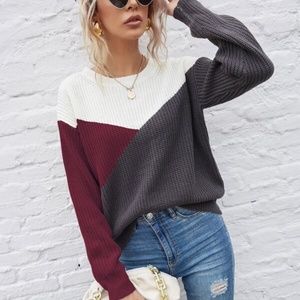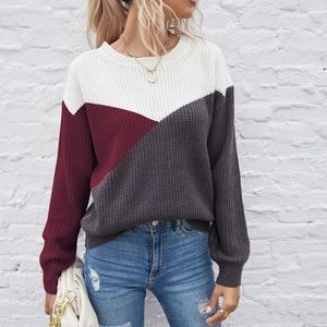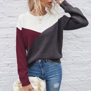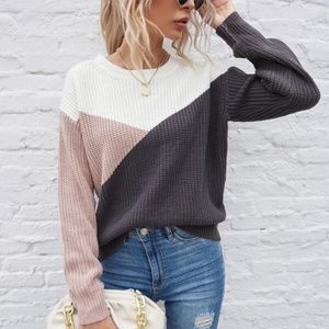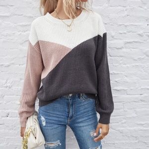 ColorBlock Pink Coral Oversized Knit Sweater Top