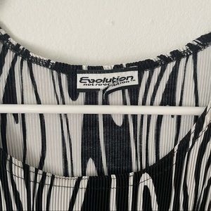 this top is ribbed with a lettuce-cut hem and black stitching. it’s super stretchy and has the most sick pattern.