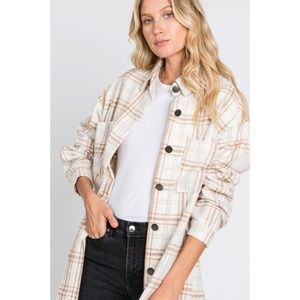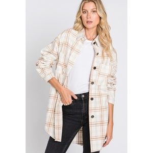 SOLD OUT Beige Plaid Flannel Oversized Shacket Shirt Jacket