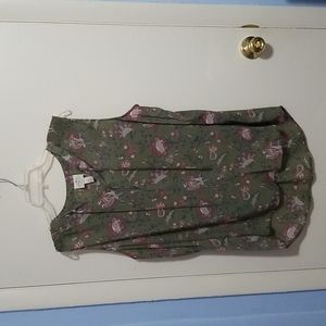 St. John's Bay Sage Green And Floral Sleeveless XL Blouse