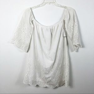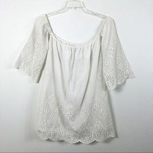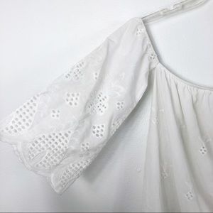 4SI3NNA White Off The Shoulder Eyelet Mini Dress