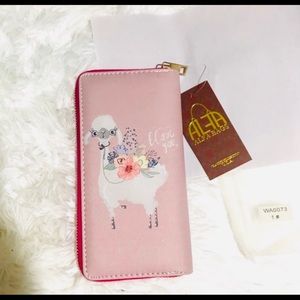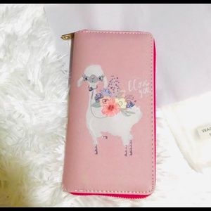 New! Sale🔥Pink Llama Flax Leather Full zip Wallet
