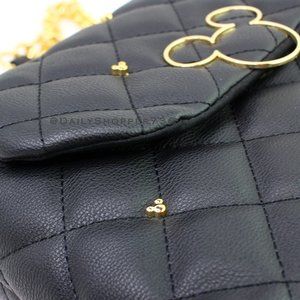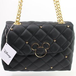 Disney Mickey Mouse Chunky Chain Quilted Black Vegan Leather Handbag