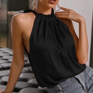 Boho Burgundy Red satin halter top summer Minimalist