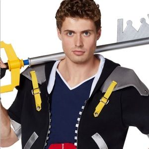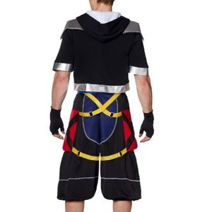 Suit up and save the world from darkness as Sora, the daring hero from Kingdom Hearts! This officially licensed costume features a black and silver jacket with an attached blue and red shirt, matching pants and gloves, and a blue belt. Grab your Keyblade (sold separately), join Donald and Goofy, and defeat the Heartless with this heroic ensemble!